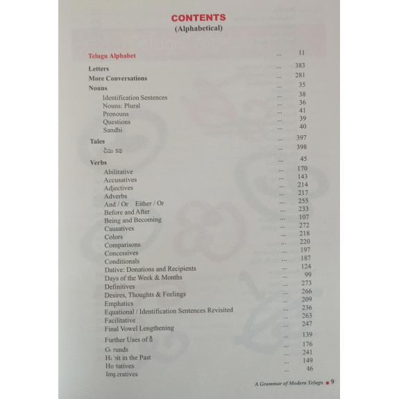 If you are a beginner in Telugu, you should have the help of a native speaker, at least in the beginning part of this book related to the alphabet and pronouns. In this book., the alphabet is given to you in three sections: I) Vowels, 2) Consonants: Stops, 3) Consonants: Semi-vowels, Liquids, and Sibilants (starting on p. 16). Wherever the writing of the alphabet is not intuitive, I have identified those graphic forms with a red circle around them.